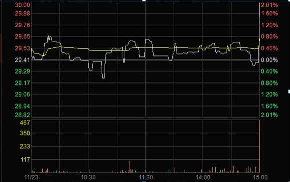 2011年11月23日臨近收盤期間(14:56:24至14:59:28),任某某為了在短期內(nèi)拉升股價(jià),大量申報(bào)買入“X”4筆共計(jì)63,000股,占尾市階段市場(chǎng)申買量的比例高達(dá)75.54%;委托價(jià)格由29.60元升至32.00元,每筆均高于當(dāng)時(shí)市場(chǎng)上的買1檔價(jià)格,三分鐘內(nèi)將股價(jià)由29.35元拉升至30元收盤,拉升幅度達(dá)2.21%。(見下圖)